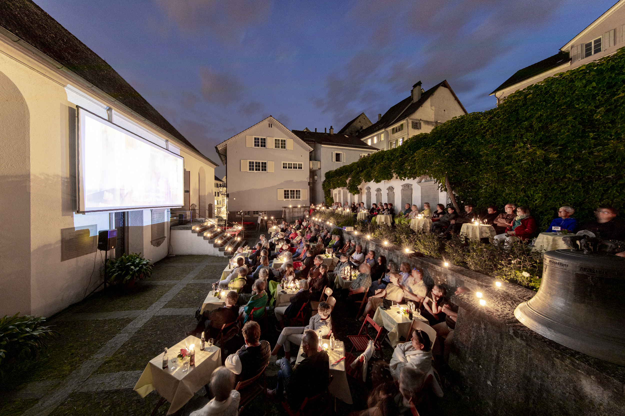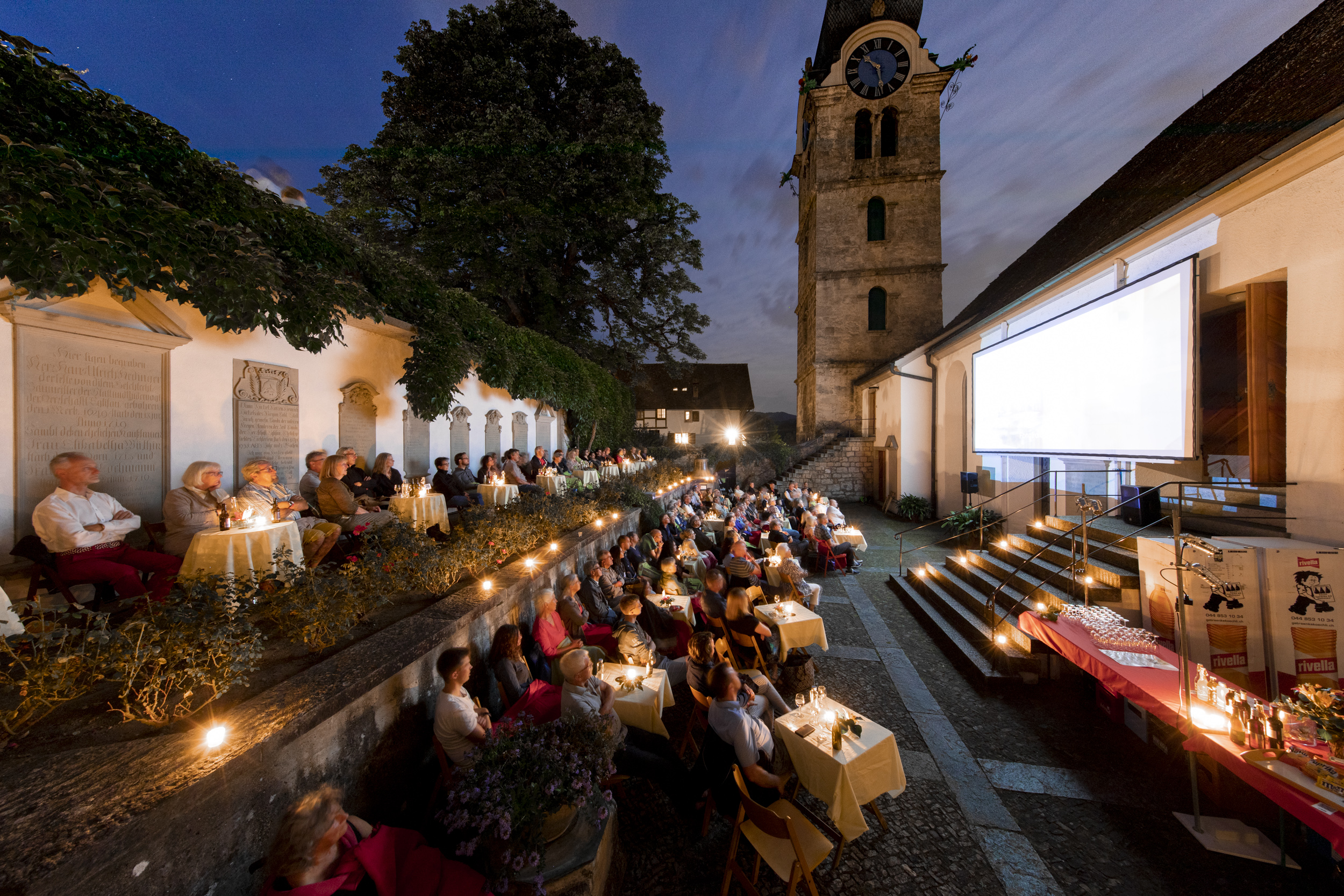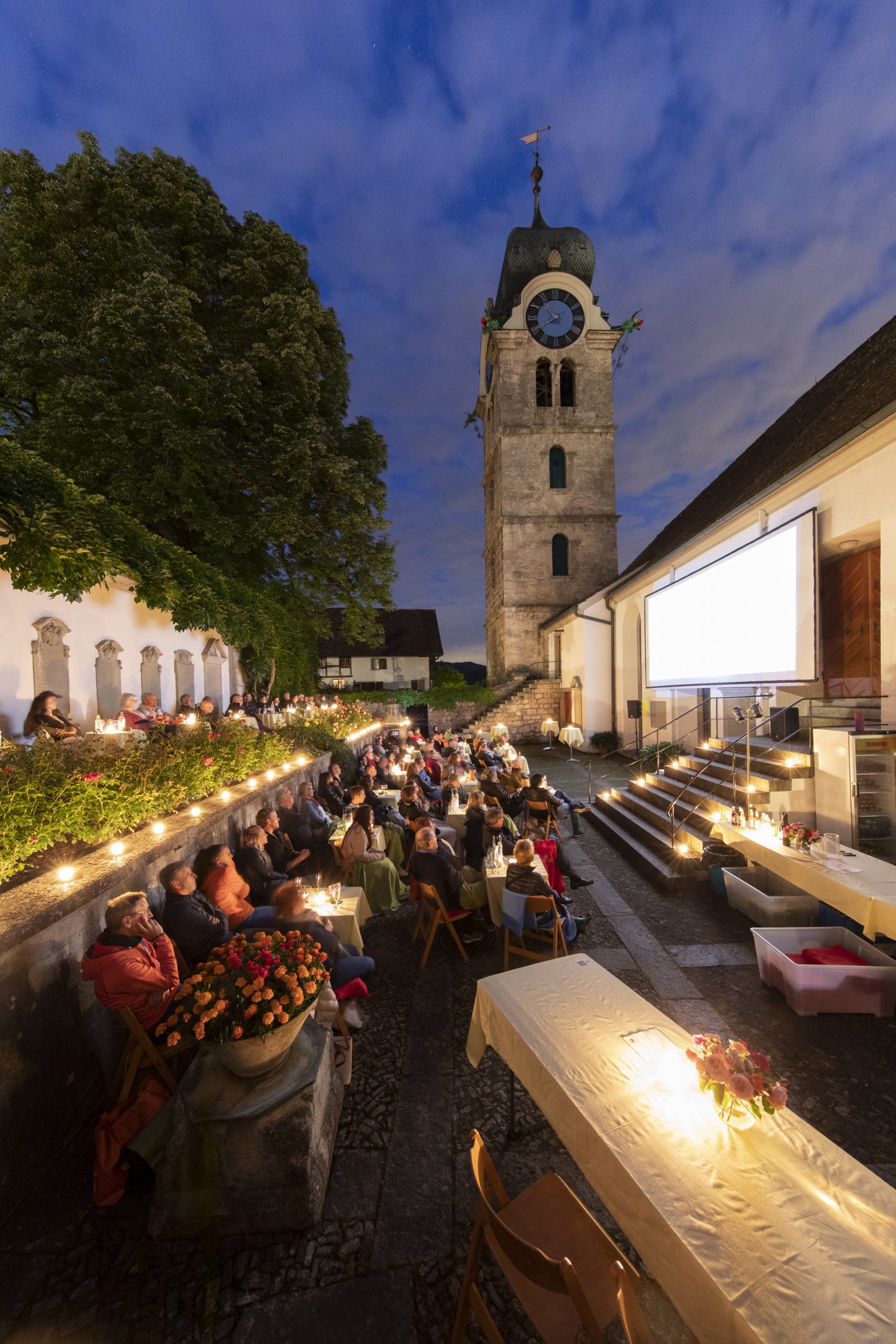 Die Filmtage Eglisau fanden 2020 und 2021 coronabedingt in kleinerem Rahmen auf dem Kirchenplatz hinter der Kirche statt. 2022 sind wir dann wieder an den alten Platz vor der Kirche umgezogen.